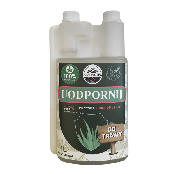 Nawozowy produkt mikrobiologiczny Uodpornij - Do Trawy to unikalne połączenie kompleksu bakterii ryzosferowych z grupy Bacillus spp i pożywki w postaci biohumusu dzięki czemu idealnie nadaje się dla świeżo założonych trawników jak i do odmłodzenia, zagęszczenia i odbudowy tych nieco starszych.Nadaje się zarówno do nowo zakładanych trawników z rolki jak i tych sianych z nasion.